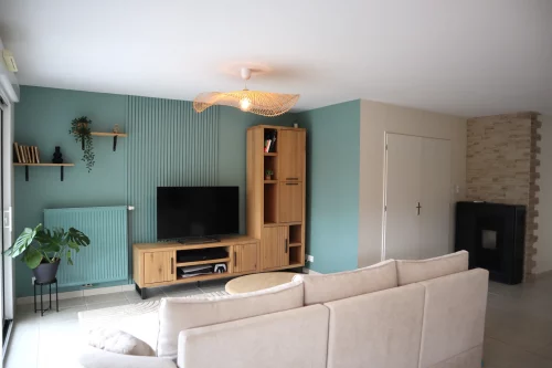 Résultat : un séjour qui reflète la personnalité des propriétaires, à la fois moderne, naturel et apaisant. Un lieu où il fait bon vivre, pensé dans les moindres détails. L’aménagement de l’entrée viendra prochainement compléter ce projet, que je partagerai bientôt en images.
