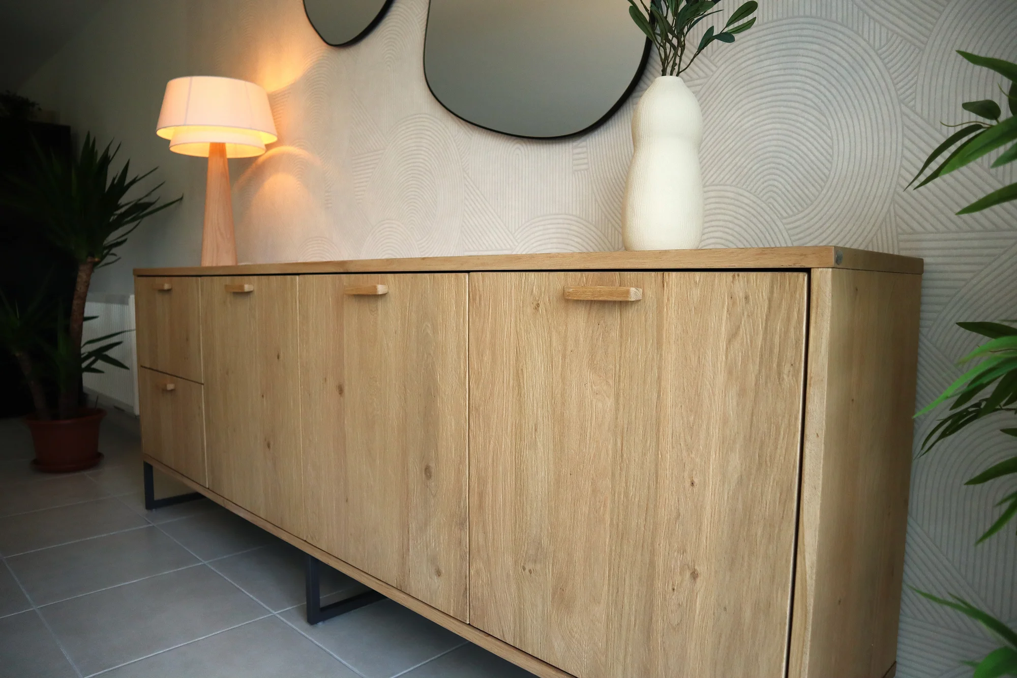 Résultat : un séjour qui reflète la personnalité des propriétaires, à la fois moderne, naturel et apaisant. Un lieu où il fait bon vivre, pensé dans les moindres détails. L’aménagement de l’entrée viendra prochainement compléter ce projet, que je partagerai bientôt en images.