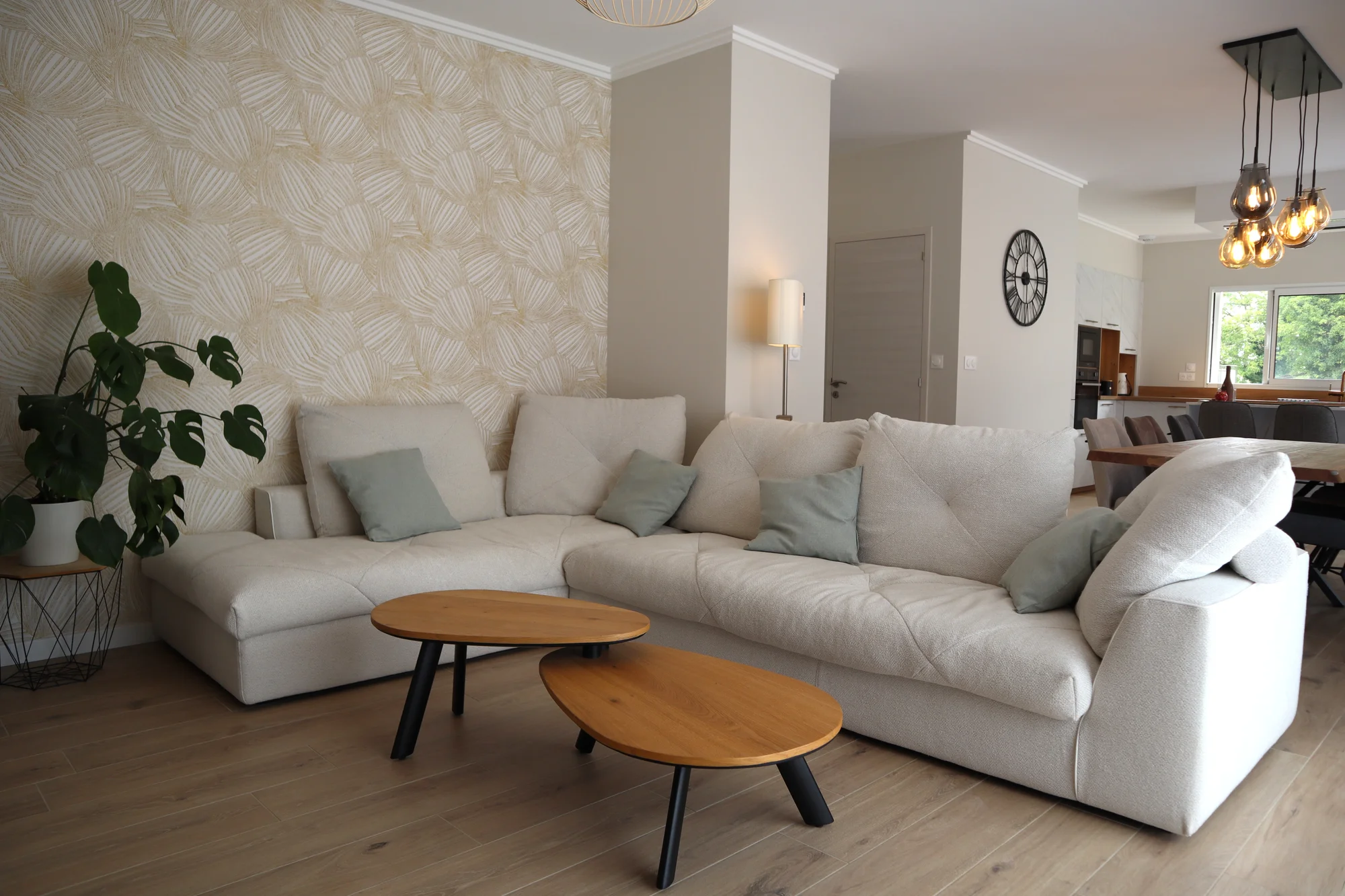 Le fil conducteur de ce projet : créer un intérieur naturel, épuré, lumineux et chaleureux, où le couple peut à la fois se détendre et recevoir leurs proches dans une atmosphère conviviale et cocooning.